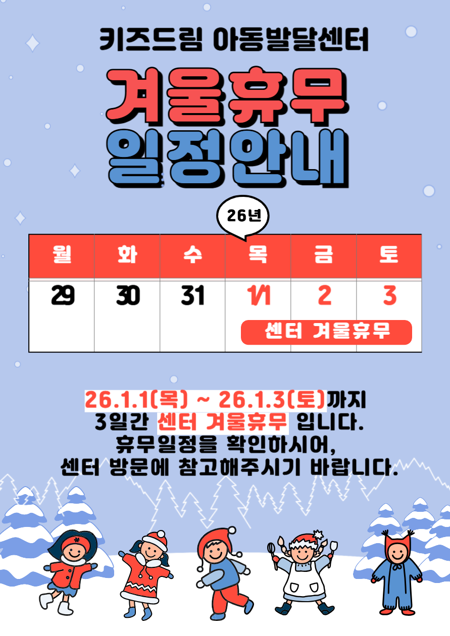 | 키즈드림아동발달센터 겨울 휴무 안내 |